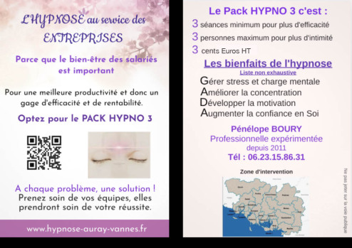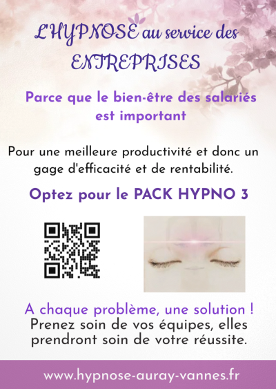 C'est pourquoi j'ai mis en place le PACK HYPNO 3, un service dédié aux entreprises soucieuses du bien-être de leur personnel afin de libérer tout leur potentiel.